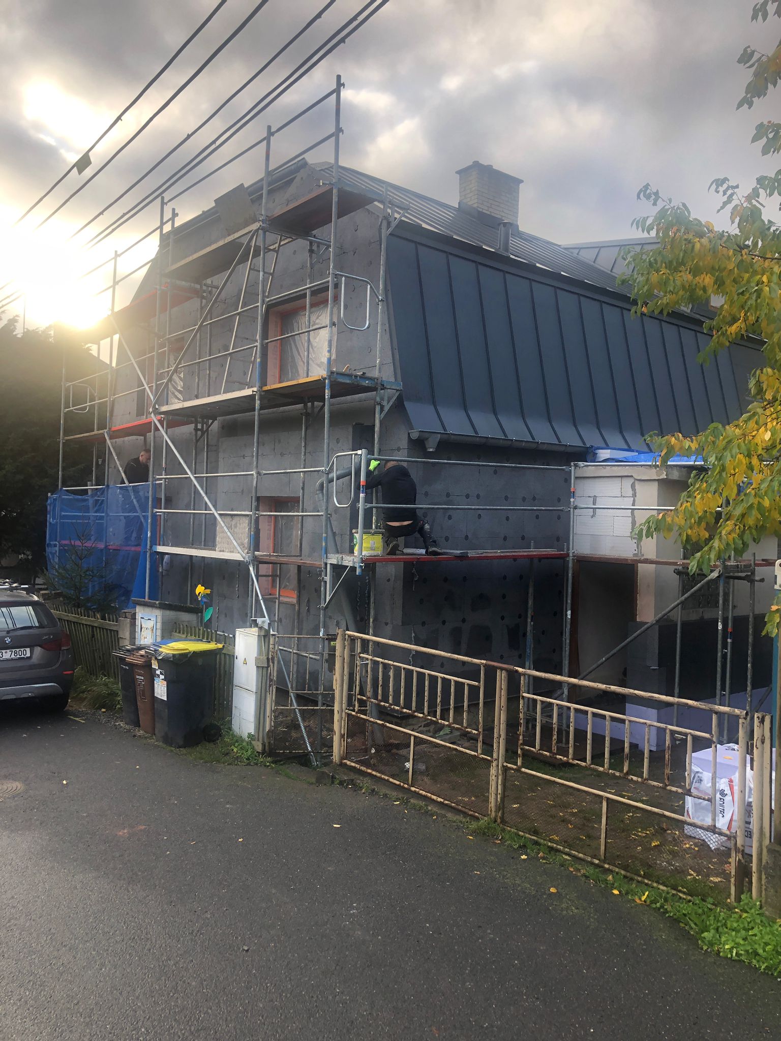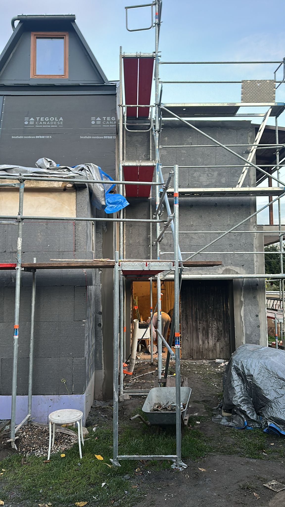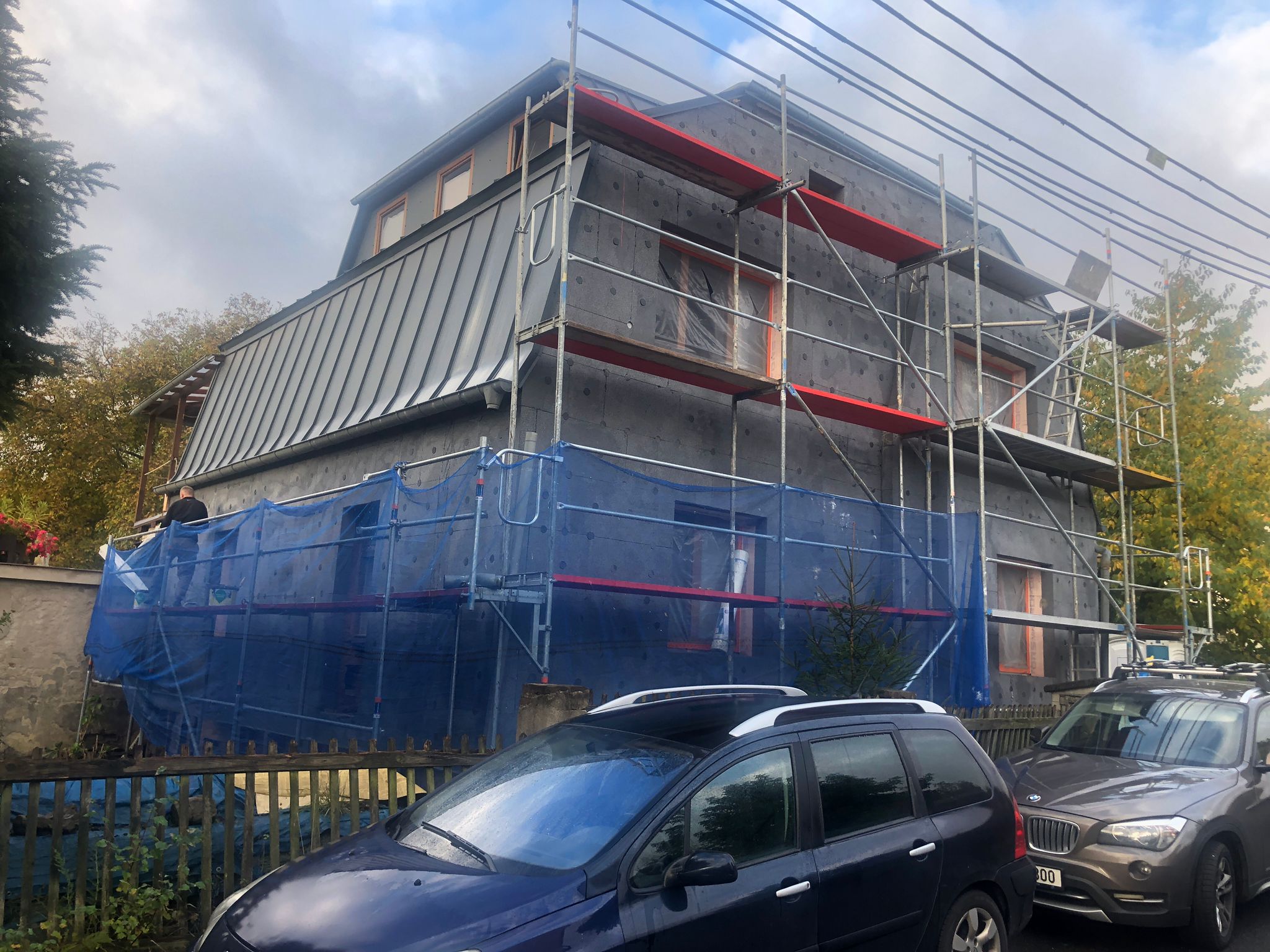 Na tomto rodinném domě právě probíhá kompletní zateplení a obnova fasády. Cílem je zlepšit energetickou účinnost, sjednotit vzhled domu a dodat mu svěží, moderní charakter.